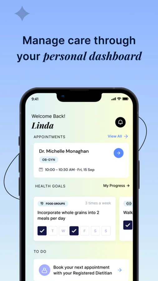 - Once you've set goals with your Registered Dietitian, keep track of them in the app