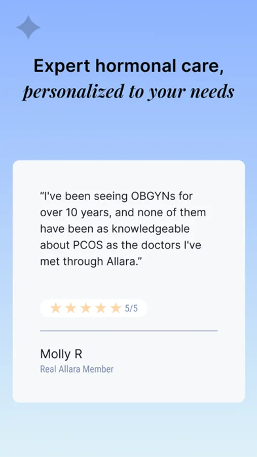 Allara provides comprehensive, compassion-first care to manage your hormonal health. We treat you *as a whole person* - not a set of symptoms.