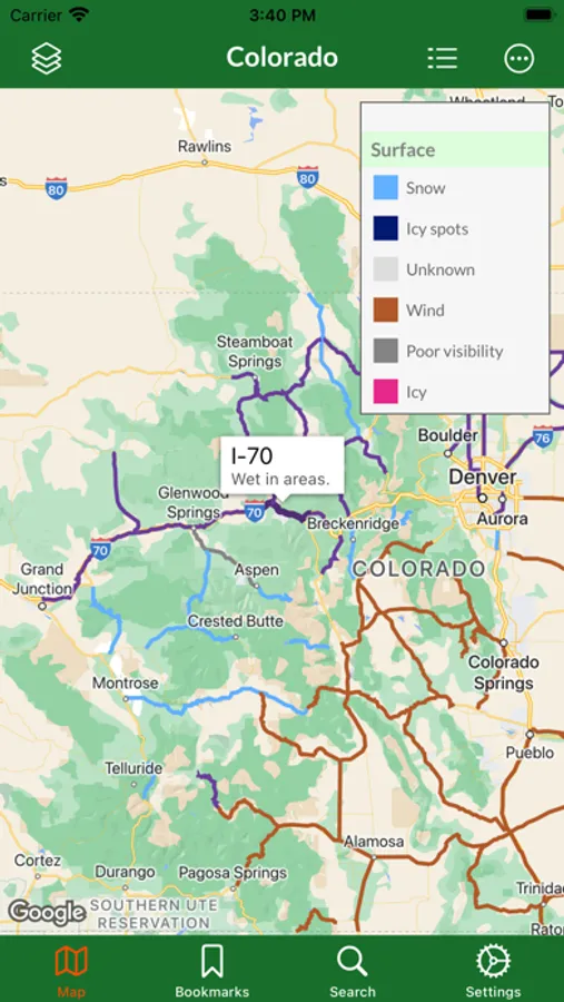 Know before you go. Whether you're a commuter or a recreational traveler, you need information about the road ahead. With this app, you can see road conditions, view traffic cameras, read alerts about construction and incidents, and weather information. Also available is Google Traffic that tells you how busy the roads are. This app supports all 50 states, all wrapped up for you in one app.