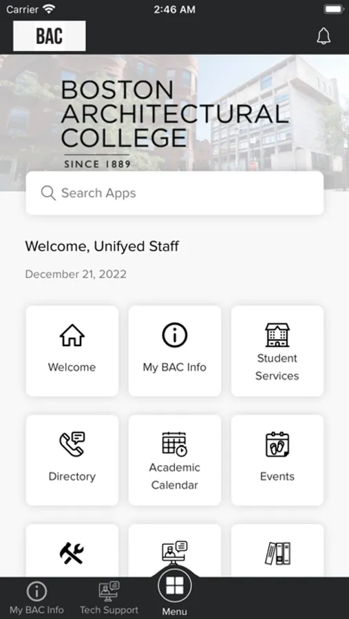 Official mobile application of The Boston Architectural College (BAC) helps you stay connected to our global college community. Details in this app will be updated regularly to improve your engagement with the BAC. Features include informational services suchas campus happenings, news, events, and academic programs. Current students will have access to their class schedule, online resources, events, holds, library, and other resources as they become available.