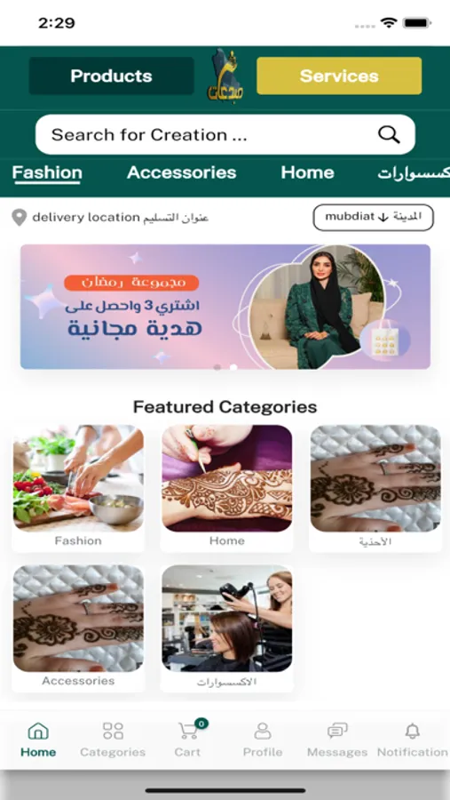 تطبيق مبدعات: يستهدف جميع النساء التي يرغبن في مزاولة هواياتهن ومهارتهم تحت سقف تجاري، يتيح التطبيق لعرض الخدمات والمنتجات للعملاء، وتزيد المبدعات بجميع الدعم اللوجستي من بوابات دفع، الشحن ، ربط العملاء بالمبدعات بأحدث الطرق.