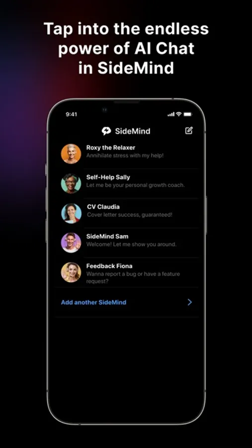 Welcome to SideMind, the ultimate AI chatbot app powered by GPT-4 and ChatGPT technology! Chat with a wide variety of AI-generated characters or create your own chatbot for a personalized experience. From companionship and advice to creative projects and professional tasks, SideMind is here to provide you with an engaging and enjoyable chat experience.