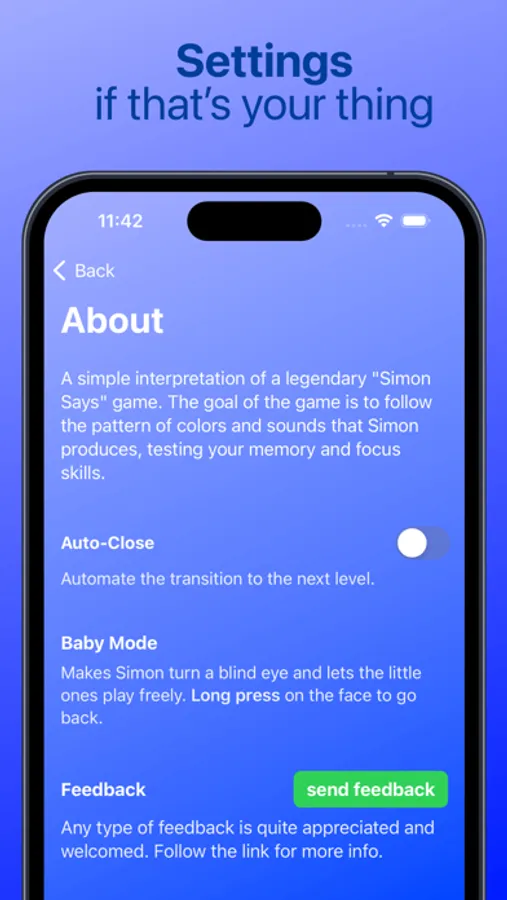 "Simon Says" is a classic memory game where you follow a sequence of colors and sounds that increase in complexity as you progress. With intuitive controls and vibrant graphics, this app challenges and entertains players of all ages. Put your memory skills to the test and see how far you can go!