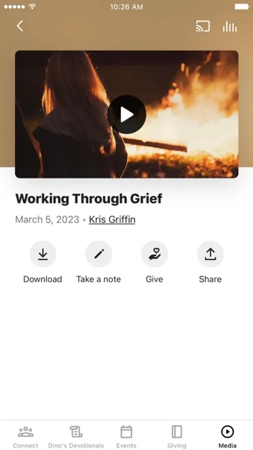 This app will help you stay connected with the day-to-day life of our church. With this app you can: watch or listen to past messages; stay up to date with push notifications; share your favorite messages via Twitter, Facebook, or email; and download messages for offline listening.