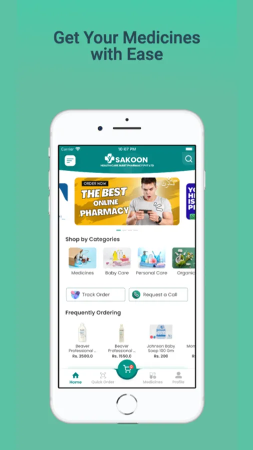SAKOON mobile app is a project of Health Care Mart Pharmacies Pvt Ltd (a fast-growing franchise network all over Pakistan) providing pharmacy and healthcare services all over Pakistan.