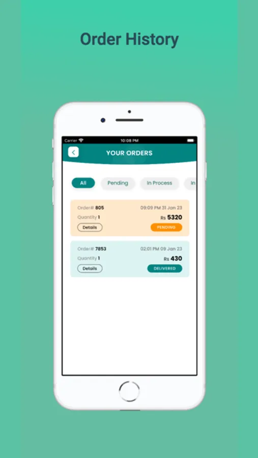Track your order by various statuses with Processing, Out for Delivery, and Delivered