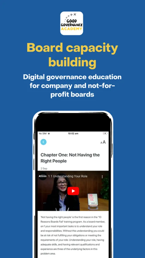 As world leading digital governance training, the Good Governance app is really a success guide for boards. It provides education around the ten reasons boards fail, and in doing so highlights the steps board and committee members must take to achieve board success. The program is competency-based, incorporates easy to understand action learning, and is mobile accessible, cost effective and scalable, making it suitable for both experienced and new board members.