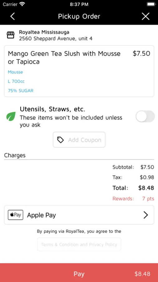 Royaltea was launched in Canada in 2016, and we are the first to bring authentic Asian style tea to Canada, Our specialty is making freshly brew tea with modern technology and infused with natural, healthy, and nutrition ingredients. We believe freshness is the key. Each drink is made to order, and every ingredient is made fresh daily. This is why our drink takes an average of 5-10 minutes from ordered and we take our time to make our drinks; our goal is to bring delicious and refreshing drinks to our customers, and the Royaltea app is making it easier and faster than ever, the new rewards system allows you to enjoy the maximum benefit of being a loyal Royaltea customer and al so brings you our latest new launch and promotions.