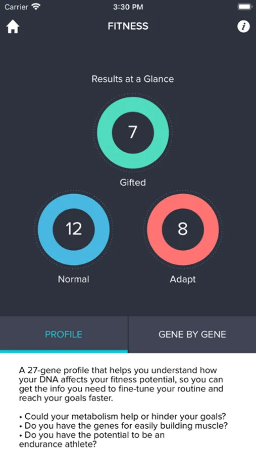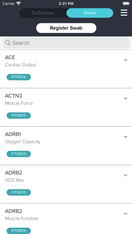 The GoToKnow Genomics app provides insights into unlocking the power of your DNA. The app will guide you through collecting your DNA, registering your sample, and unlocking your personalized DNA report.Through the portfolio of GoToKnow Genomics, you will learn more about how your body. For example how your body processes different foods, your potential to build muscle strength, and even recover from exercise. Discover what your genes may say about your potential for weight loss. Learn about how you may be able to improve your lifestyle.
