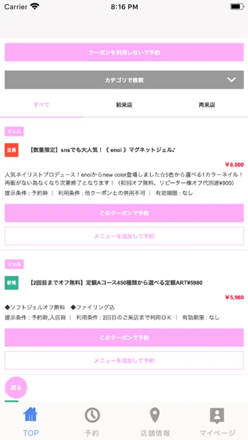 お得なクーポンが配信されます。ネット予約時にクーポン利用での予約も可能なので来店時もスムーズに施術頂けます。