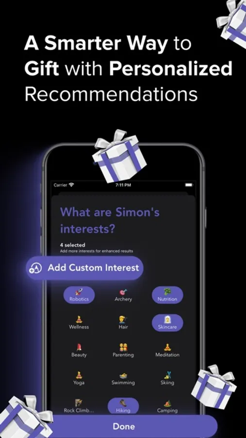 • Tailor-Made Interests: GiftGo allows you to customize gift recommendations according to your loved ones' passions, whether it's sports, music, fashion, or something else entirely. Add custom interests for even more accurate and unique gift ideas.