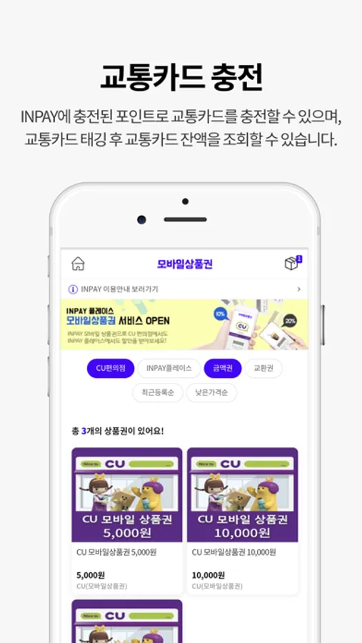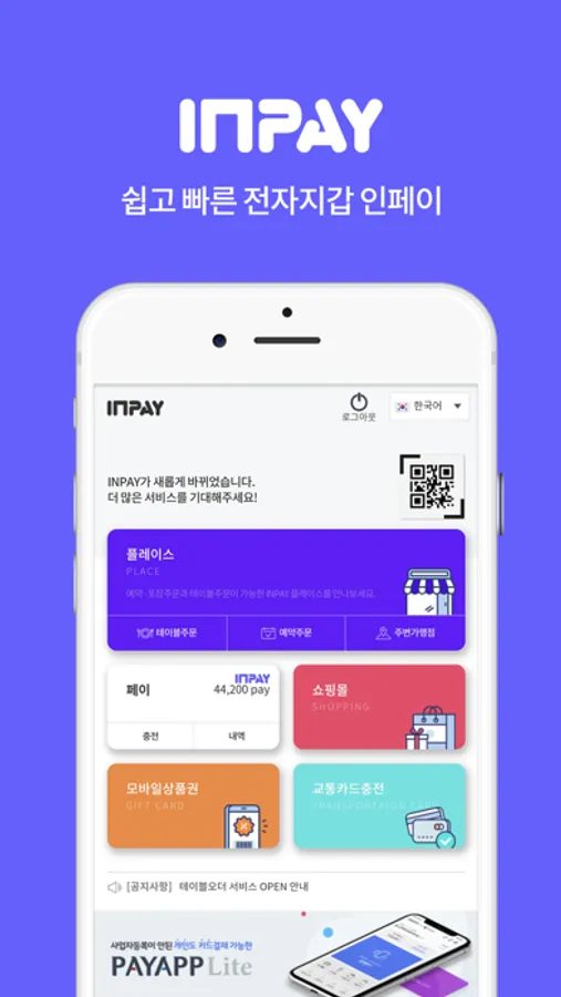 충전한 PAY로 다양한 콘텐츠를 이용할 수 있는 INPAY 애플리케이션 입니다.