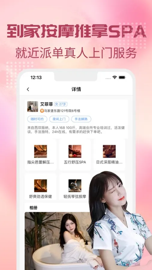 约按摩是专业的24小时宅家按摩平台,服务覆盖全国,随时随地都能预约,丰富的技师资源,完善的资质认证,为用户提供高品质的按摩养生服务,做您的健康生活服务管家。