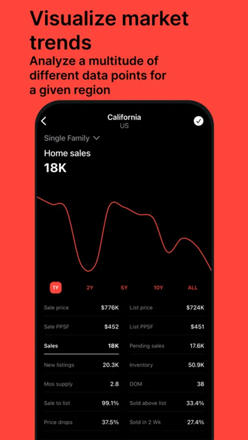 Estate offers data trends for hundreds of thousands of markets across the United States so whether you're a first-time homebuyer, a seasoned real estate investor, or just looking to keep an eye on the market, our app has you covered. Download it now and start exploring the world of real estate with confidence.