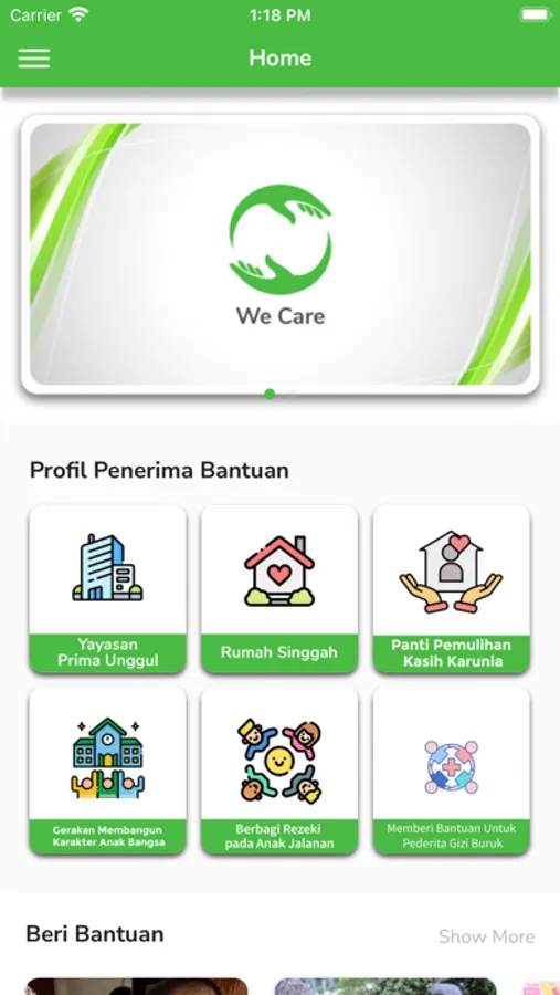 We Care memfasilitasi Anda untuk berkontribusi dalam membangun dunia yang lebih baik. Melalui jiwa sosial dan kepedulian kepada sesama dan lingkungan, kita bisa saling membantu dan menguatkan. We Care percaya masih banyak orang baik di dunia ini. Setiap orang tentu memiliki dorongan untuk berbuat kebaikan tetapi mereka tidak tahu bagaimana caranya atau melalui apa. We Care (togetherwecare.id) ingin membantu semua orang dalam menyebarkan cinta, harapan, tawa, dan keajaiban bagi orang lain.