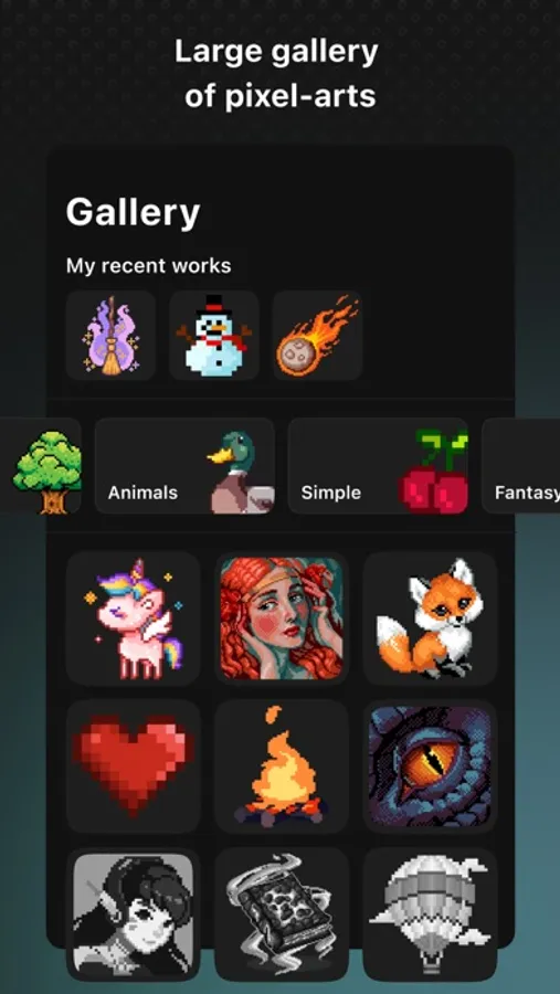 - Extensive Gallery: Explore a constantly expanding collection of pixel art images. New artworks added weekly!