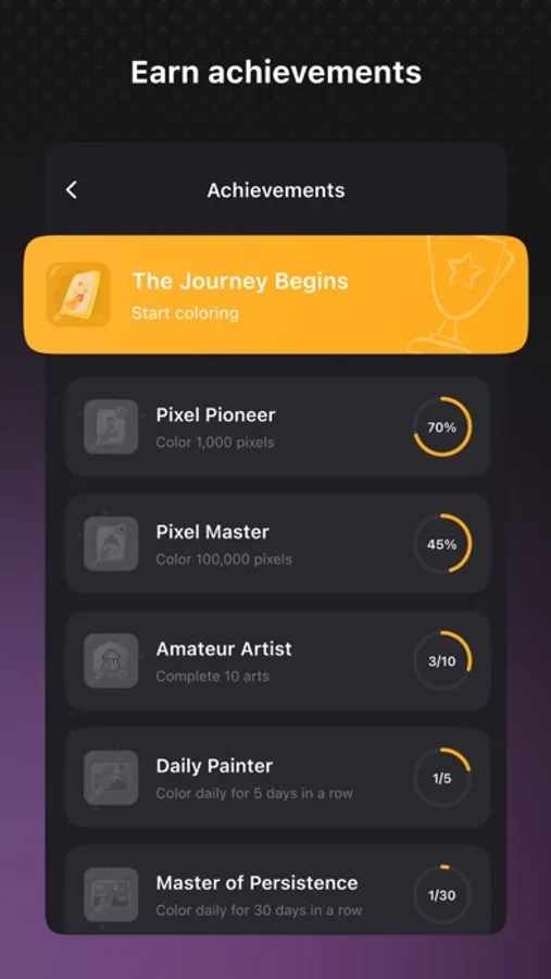 Download Artiny now and experience the ultimate pixel art coloring app. Get ready to relax, recharge, and let your creativity soar!