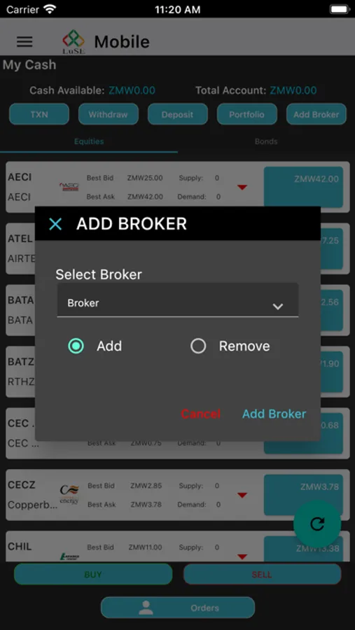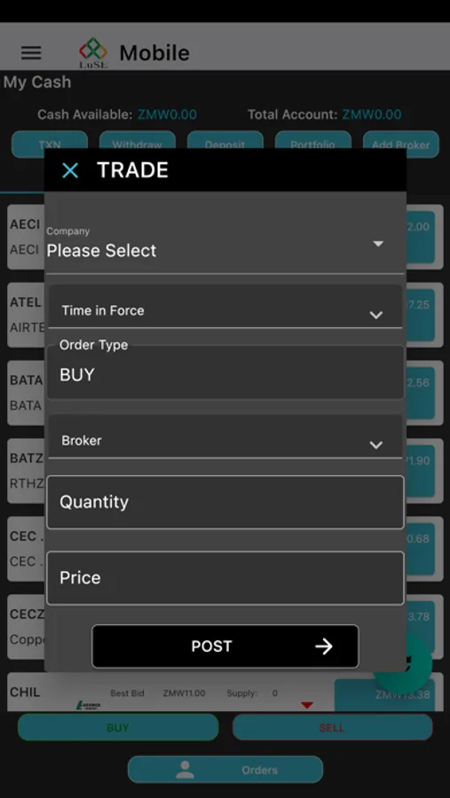 Mobile Application for trading securities on the Lusaka Stock Exchange.