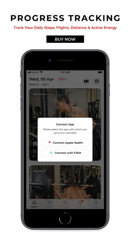 App also uses Apple Health to track energy burned and heart rate during a workout session, if an Apple Watch is used.