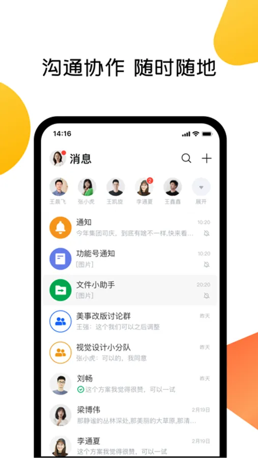 - 即时沟通:分类处理会话,提升消息的处理效率。不仅是聊天工具,更是消息聚合平台。