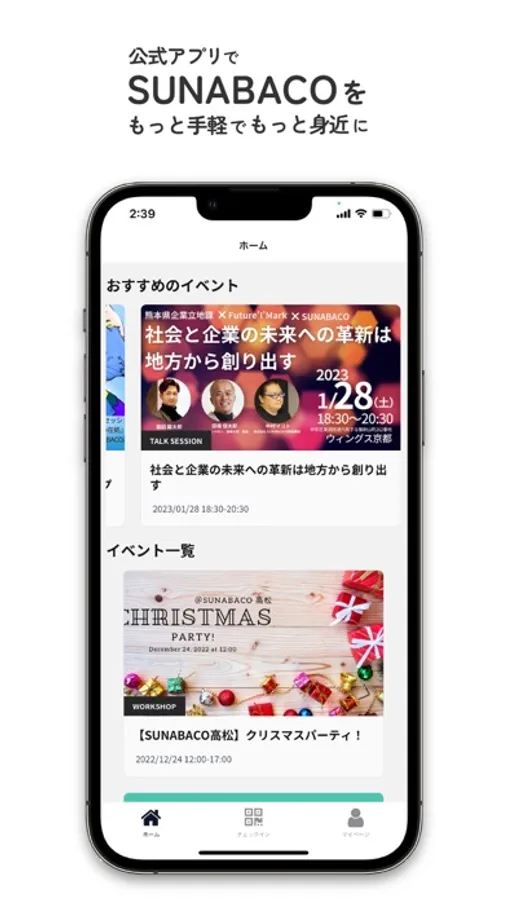 SUNABACOの勉強会、トークイベント情報がすぐ確認できます。
