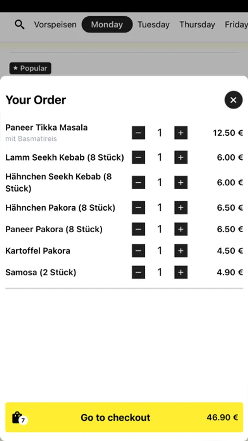 - Durchsuchen Sie die Speisekarte des Restaurants und sehen Sie sich alle anpassbaren Optionen im Voraus an
