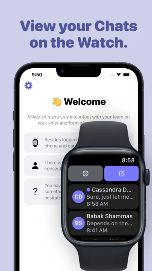 Mikey lets you stay in contact with your team on your wrist. It is the first Apple Watch application for Microsoft Teams that, after having logged in, works entirely without the iPhone.
