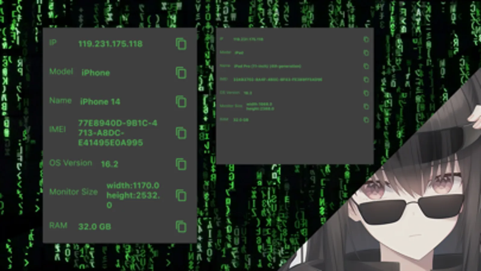 The information you need is displayed as soon as you open the application. So you can instantly see if you are connected to an IP address VPN or proxy server. It can also identify the type and individual device by displaying its model name and IMEI/UUID. If you try to display such information from your phone, you will have to open the settings screen and go through a complicated procedure. However, with this app, you don't have to go through that procedure because you can immediately display it, and you can also display the OS version. It can also tell you the specs of the device by displaying the size of the monitor and the amount of RAM. In addition, by retrieving and displaying the Internet speed, we can know what the Internet connection is like on that device. This is especially helpful when using online games and streaming services.