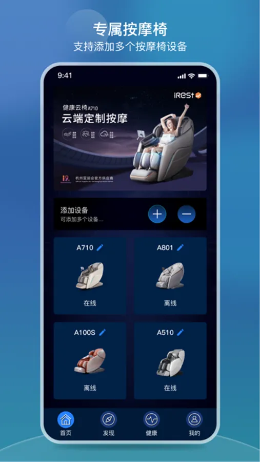 通过iRest云APP来操控按摩椅,完成与按摩椅之间的便捷交互。