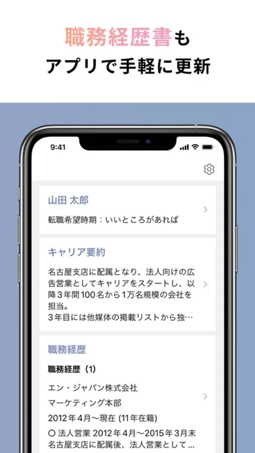 職歴や希望条件情報など、アプリで手軽に情報更新ができます。定期的にプロフィールを更新することで、キャリアの棚卸もできますよ。