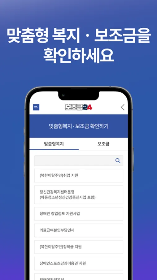 본인에 신청자격을 확인하여 지원받을 수 있는 보조금 확인가능