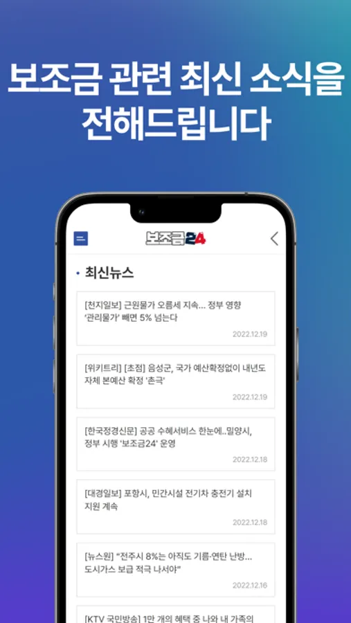 보조금과 관련된 최신뉴스 확인 가능