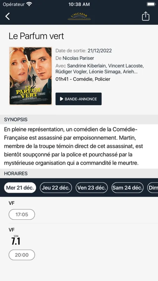 Retrouvez à chaque instant toute l’info de votre cinéma L'Alcazar à Asnières sur votre iPhone ! Les films à l’affiche, les horaires des séances, les fiches films et les événements et infos pratiques de votre cinéma !