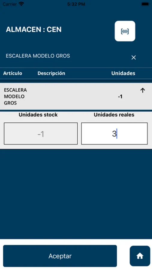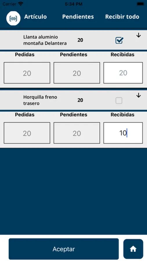 Controle desde la aplicación el stock actual de su almacén, así como la recepción de pedidos de proveedores, indicando las unidades recibidas.