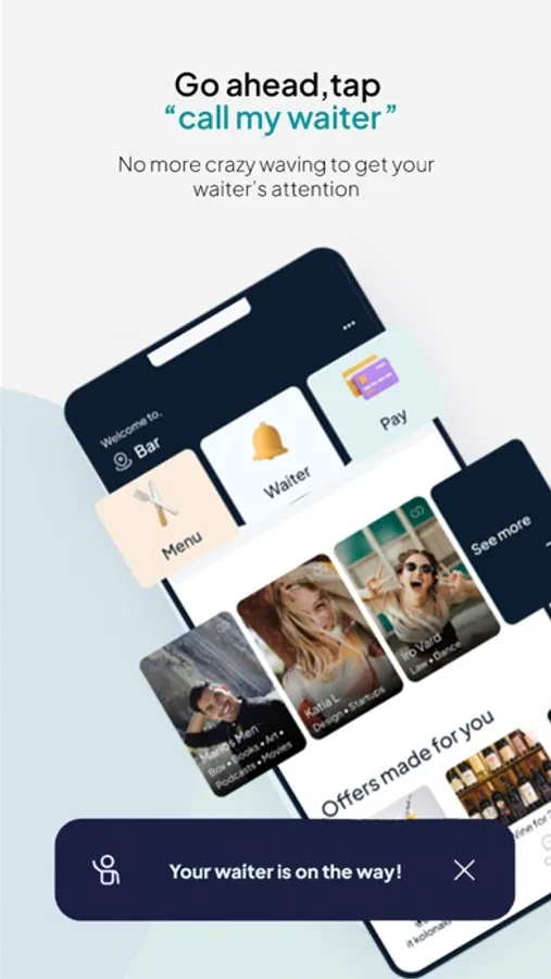 4.  Request the waiter's attention or get your queries answered with a simple tap - no more waving hands or waiting!