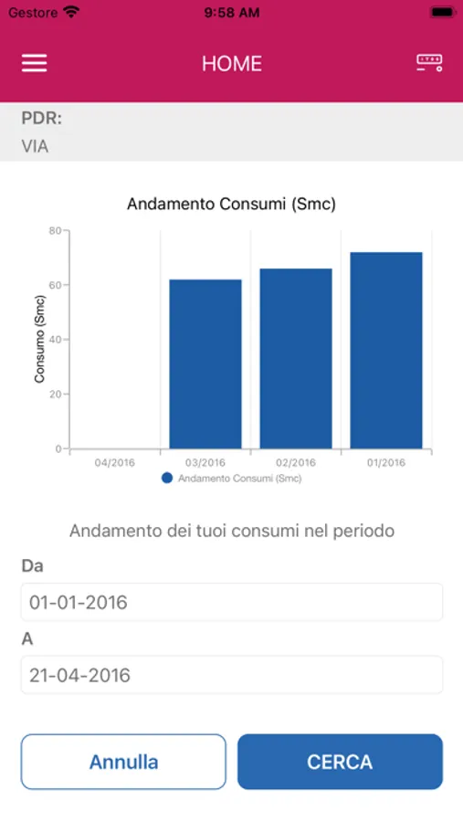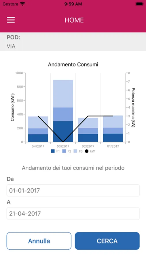 Facile e intuitiva, per le tue forniture di Energia Elettrica e Gas, potrai consultare i tuoi contratti, verificarne i dati tecnici, tenere sotto controllo i tuoi consumi, inserire le autoletture Gas, consultare le fatture in formato pdf e scaricarne il dettaglio analitico se sei un cliente residenziale.