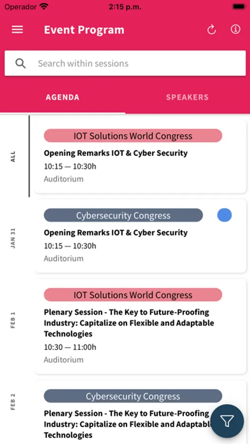 · My Agenda: to add speakers, sessions and exhibitors and make your own schedule.