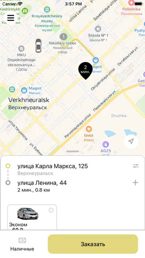 - Заказ авто без звонка диспетчеру. Отметьте точку