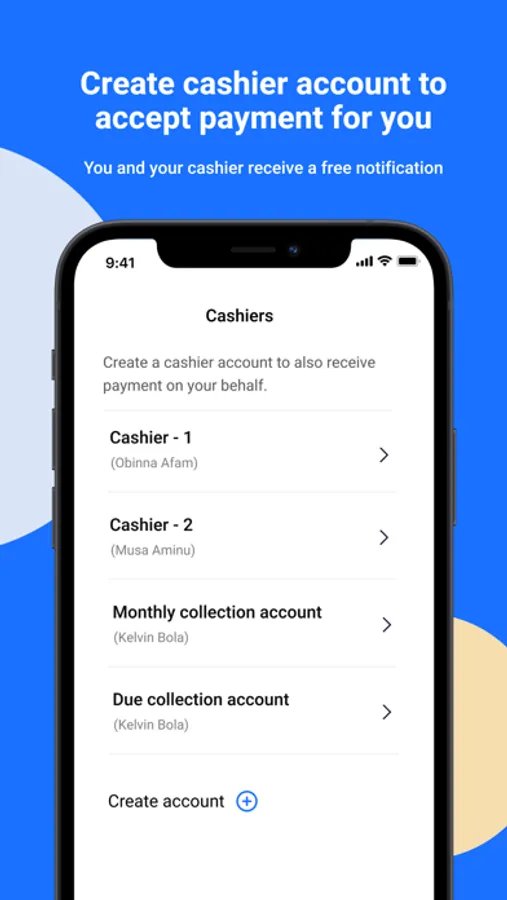 • You can create sub-account for your salespersons to accept payments on your behalf.