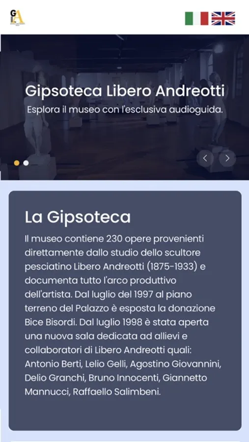 Il museo contiene 230 opere provenienti direttamente dallo studio dello scultore pesciatino Libero Andreotti (1875-1933) e documenta tutto l'arco produttivo dell'artista. Dal luglio del 1997 al piano terreno del Palazzo è esposta la donazione Bice Bisordi. Dal luglio 1998 è stata aperta una nuova sala dedicata ad allievi e collaboratori di Libero Andreotti quali: Antonio Berti, Lelio Gelli, Agostino Giovannini, Delio Granchi, Bruno Innocenti, Giannetto Mannucci, Raffaello Salimbeni.