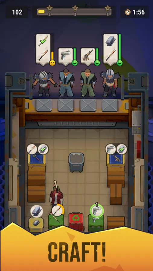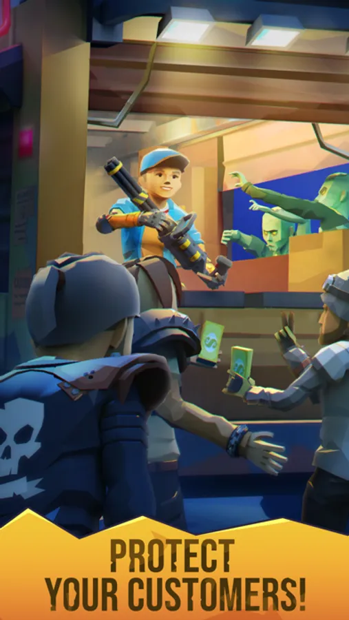 Produce numerous baseball bats, guns and rifles—anything that helps fend off the roaming zombies. Swing heavy axes and wave mighty hammers at them; shower them with bullets; scorch them with hellfire from bazookas and missile launchers. Everything goes as long as it helps bring down the hungry brain-munchers! Oh, and make sure you’ve gotten your hard-earned currency from your customers before they get devoured.