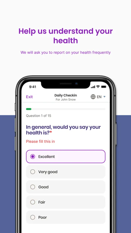 The INHERIT app is built for households to track their well-being and symptoms. You and your family members will be asked to track your symptoms daily. In case you get sick, you will be asked to log some additional health symptoms, so that you are able to understand how your symptoms are progressing. On request, your data will be shared with researchers or clinicians.