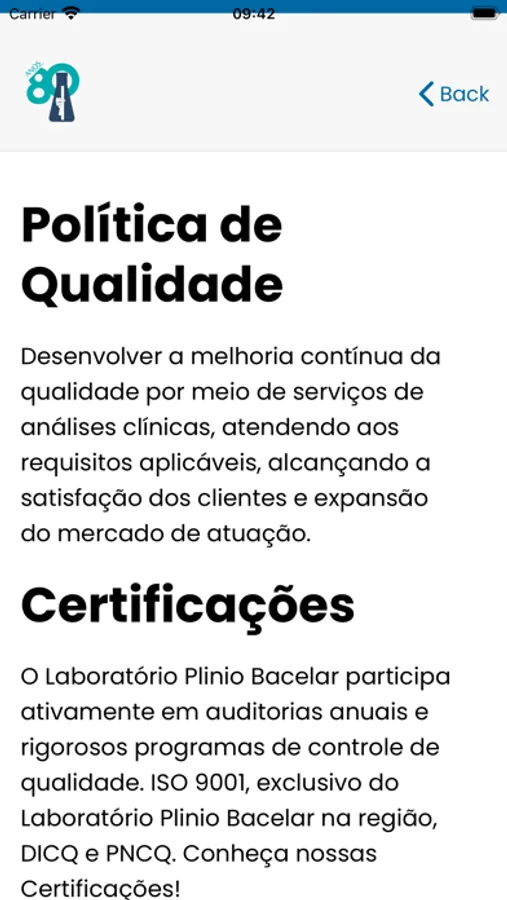 O Aplicativo do Laboratório Plínio Bacelar oferece a seus clientes a facilidade de fazer pré-agendamentos domiciliares, ver e acompanhar os resultados de seus exames laboratoriais, consultar convênios aceitos e exames disponíveis em nossos laboratórios, assim como a exata localização de cada uma de nossas unidades.
