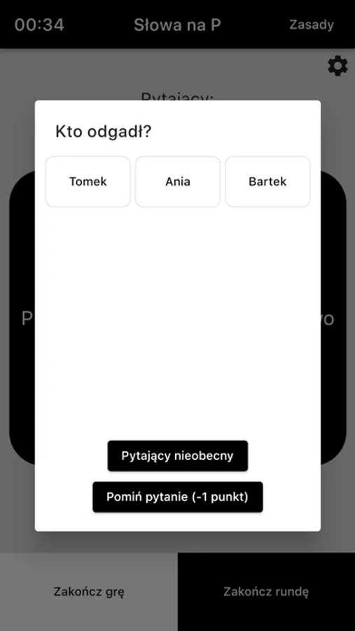 - Reszta osób zgaduje twoje hasło. Oczywiście zgadujący nie muszą zaczynać słów od litery P.