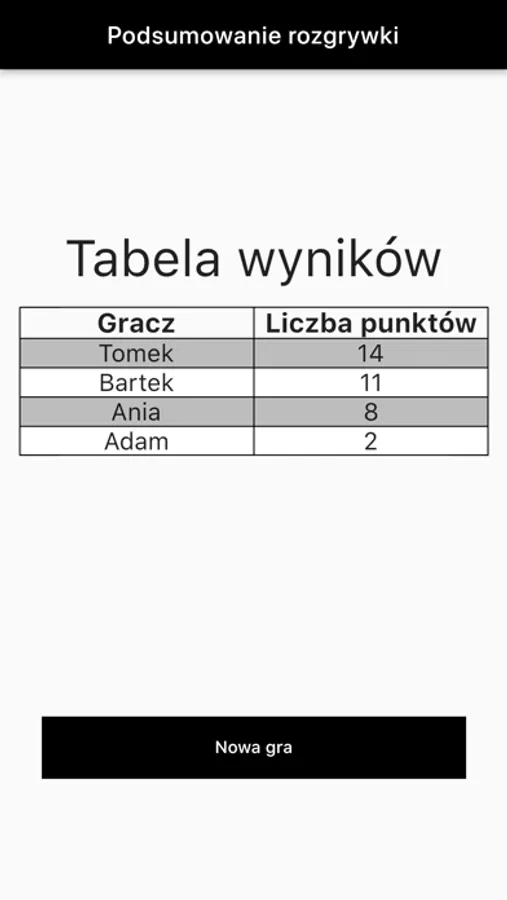 - Po skończonej rundzie podaj telefon kolejnej osobie pytającej (zaleca się uporządkowanie listy graczy zgodnie z kolejnością osób grających np. przy stole). PRZEKAZUJ TELEFON TYLKO OSOBOM, KTÓRYM UFASZ.