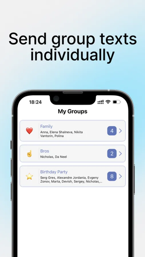 Group Text allows you to create and manage multiple contact groups, making it easy to send messages to specific groups of people.