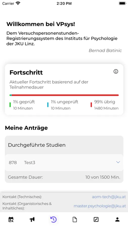 Die VPSys-App ist ein Versuchspersonenstundenverwaltungssystem für Psychologie-Studierende an der JKU.