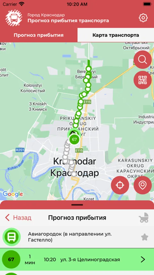 "Транспорт Краснодара онлайн" - мобильное приложение позволяющее гражданам получать информацию о работе общественного транспорта на территории муниципального образования город Краснодар.