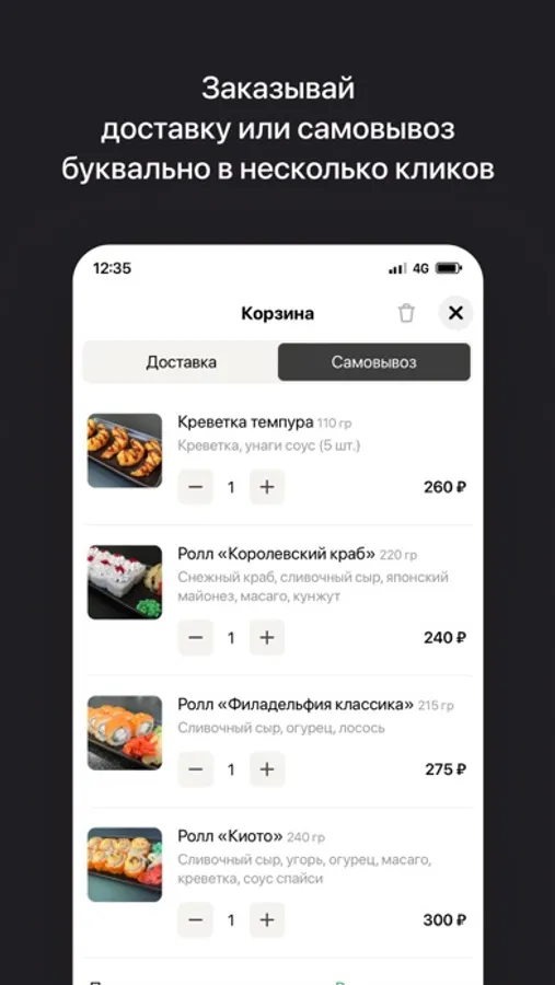 — Сделать заказ быстро и с мгновенным подтверждением через приложение;