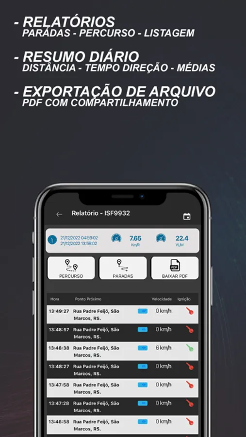 Você poderá ver aonde estão todos os seu veículos no mapa, e poderá consulta o trajeto diário, e visualizar todos os locais que seu veículo esteve no dia.